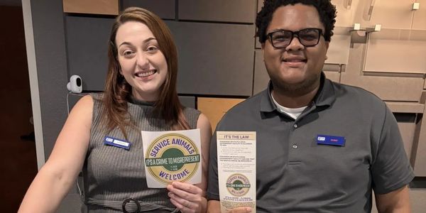 Photo: Holiday Inn Express Silver Springs, staff members, Ashlee and Bobby were excited to receive our tool kit for use with hotel guests who misunderstand service animals in places of public accommodation.
